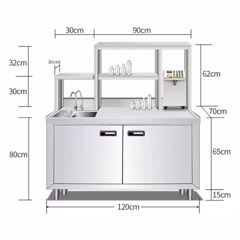 1.2 Meter Bar Counter Of Stainless Steel Customize Wheels Water Sink Faucet Shelf Ice Tank but No Refrigeration