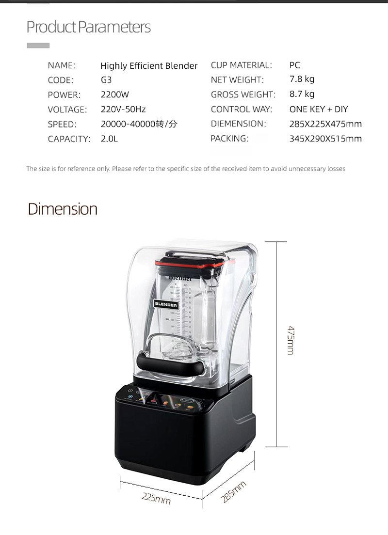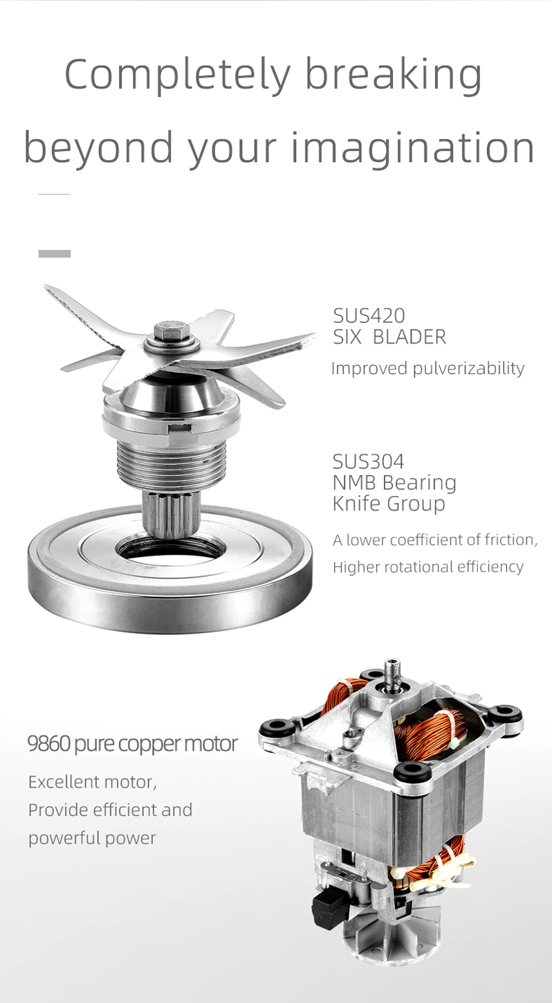 - High-Power Motor: Equipped with a robust 2200-watt 9860 pure copper brushed motor that ensures powerful and consistent blending results.