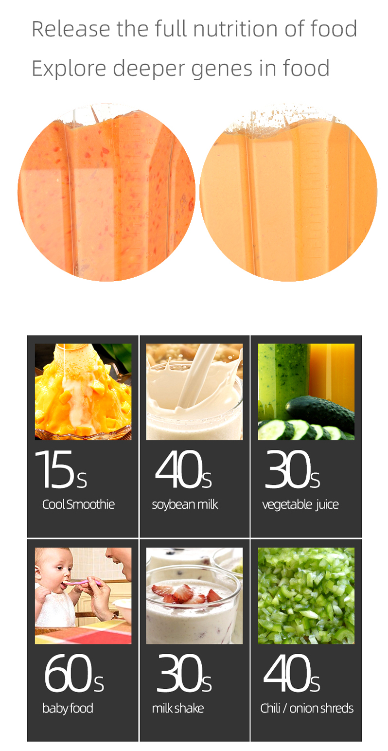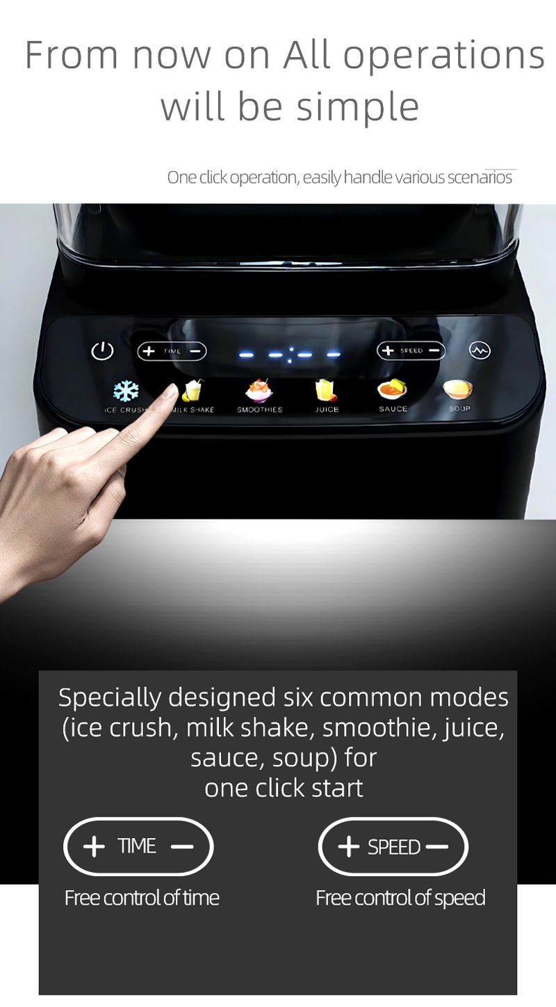 - Versatile Preset Modes: Six preset modes are available to effortlessly handle various scenarios, including ice crushing, tea extraction, milkshakes, juices, sauces, and soups.